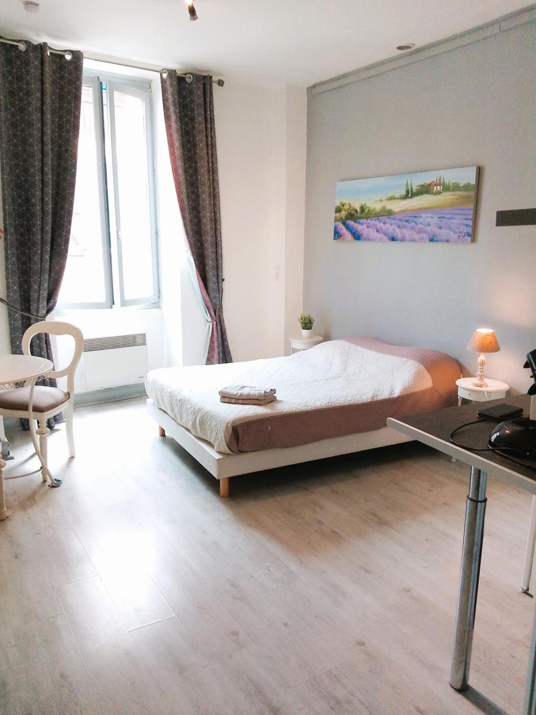 Appartement avec Balcon - N°2. The apartment has 1 bedroom and 1 bathroom with a bath or a shower and free toiletries. In the well-fitted kitchenette, guests will find a stovetop, a refrigerator, kitchenware and a microwave. Boasting a balcony with city views, this apartment also offers a coffee machine and a TV. The unit has 1 bed. ;