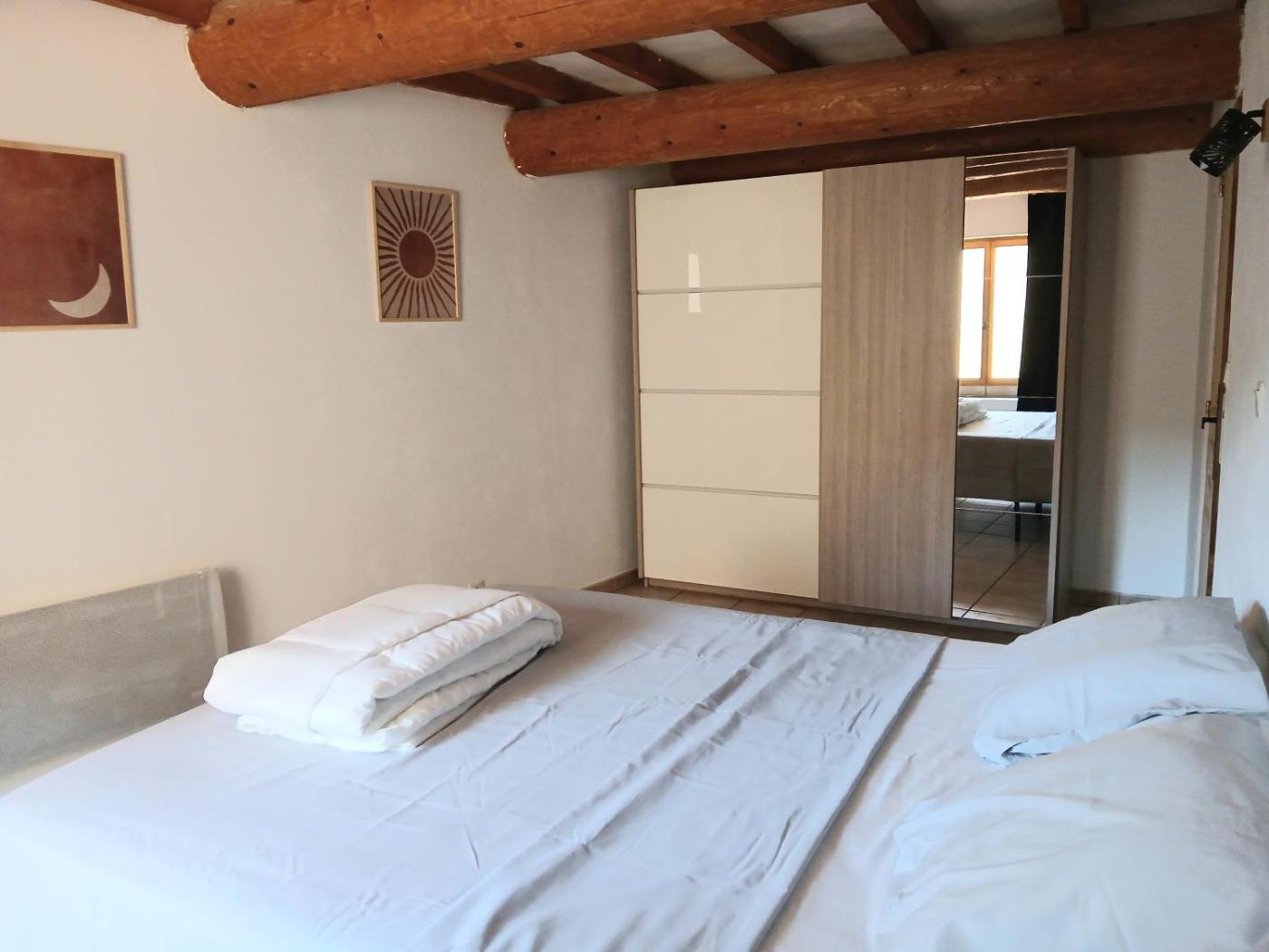 Maison de Ville 2 Chambres. This holiday home is comprised of 1 living room, 2 separate bedrooms and 1 bathroom with a bath and a shower. The holiday homes kitchen, which features kitchenware, is available for cooking and storing food. The holiday home offers a washing machine, a coffee machine, a seating area, a wardrobe and a flat-screen TV. The unit offers 4 beds.